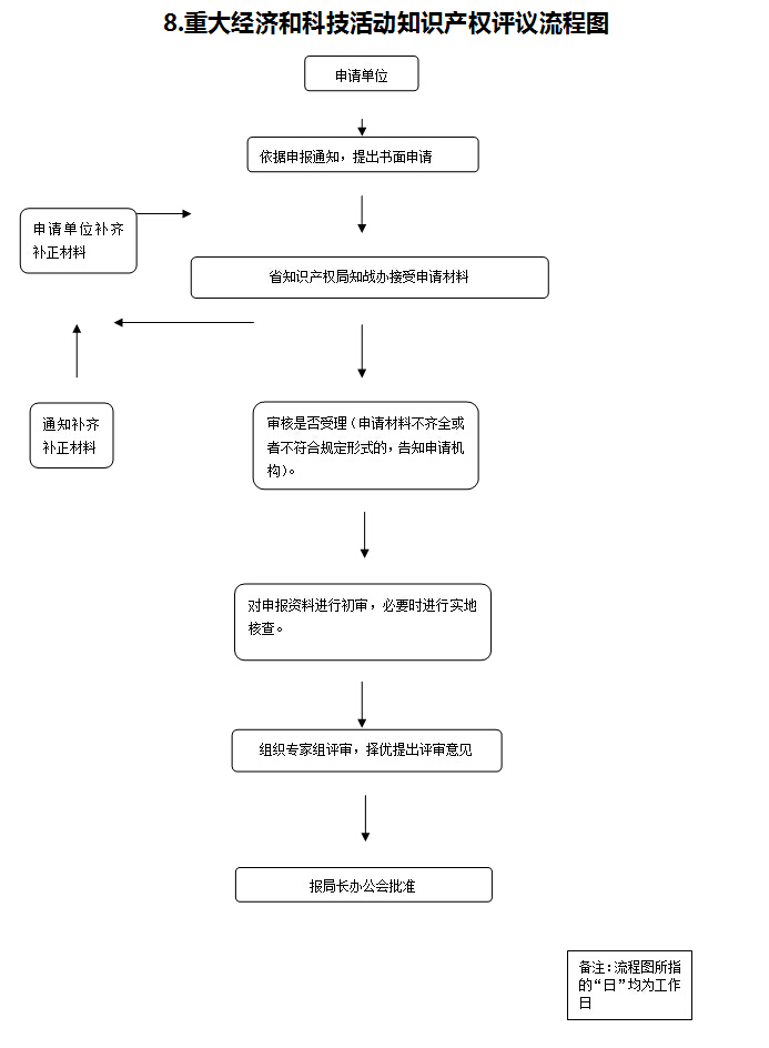 | 9 | 重大经济和科技活动知识产权评议 | 《河南省人民政府关于加快实施知识产权战略的意见》(豫政〔2013〕60号)第(四)项:“主要目标。建立重大经济科技活动知识产权分析与评议机制……。”第(五)项:“构建知识产权创造运用推进体系。实施战略性新兴产业知识产权引领计划。……加强对战略性新兴产业专利、商标、版权、技术秘密等知识产权组合的立体保护,建 立重大经济科技活动知识产权分析与评议机制,……。” 《关于深入实施知识产权战略, 促进中原经济区经济社会发展的若干意见》(国知发协字﹝2014﹞1号):“(八)加强传统产业知识产权能力建设。建立多部门联动的重大经济项目知识产权评议机制,科学评议承接转移产业和引进技术, 规避知识产权风险……。” 《河南省机构编制委员会办公室关于河南省知识产权局清理规范意见的通知》(豫编办〔2012〕469号):“(二) 内设机构……2、法律事务处……承担重大经济和科技活动知识产权审议与预警工作。” |