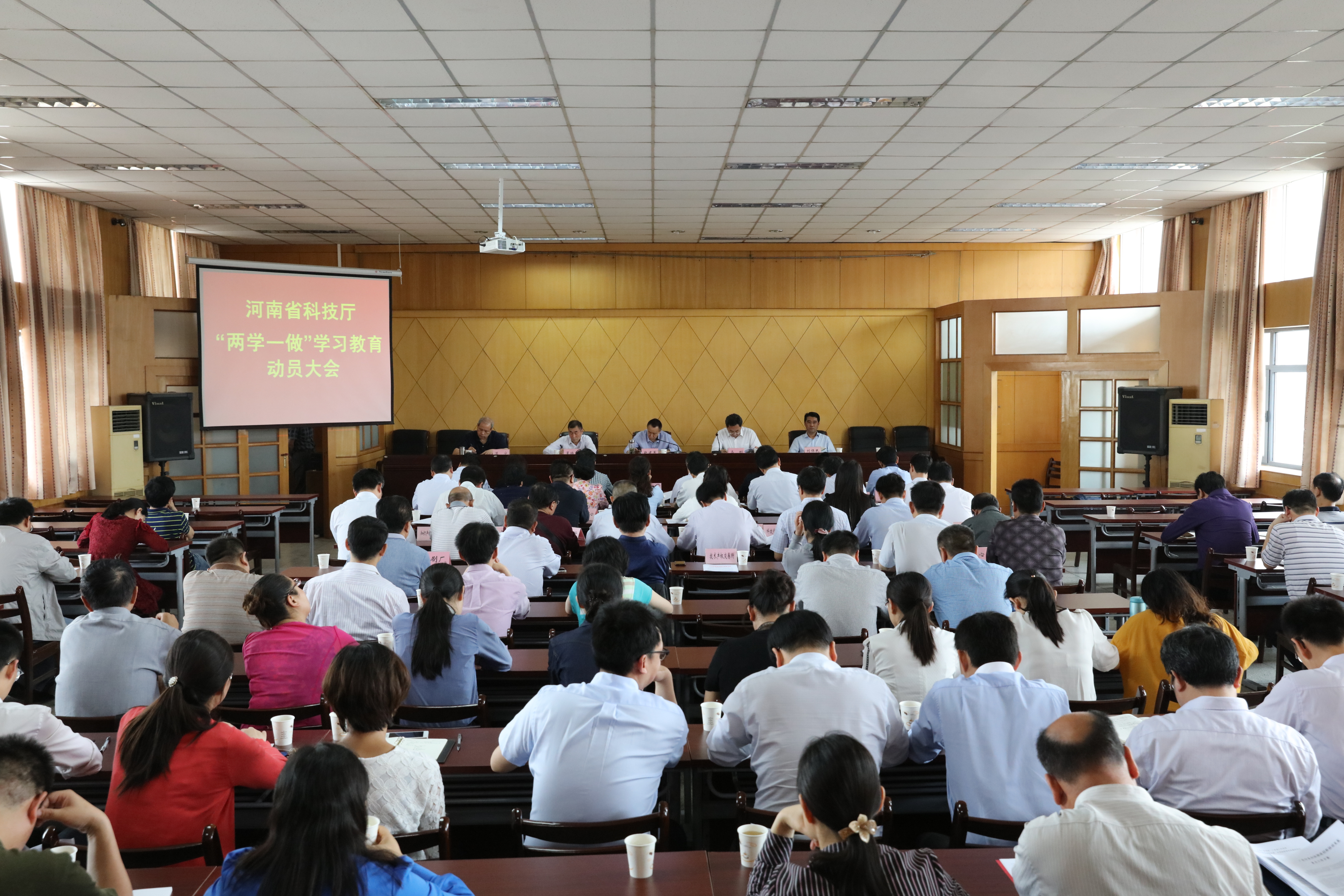 5月6日,河南省科技厅召开“两学一做”学习教育动员部署会议,深入贯彻习近平总书记系列重要讲话特别是关于“两学一做”学习教育的重要指示精神,认真落实省委书记谢伏瞻在全省“两学一做”学习教育工作会议上的讲话精神,按照中央和省委部署要求,对厅系统“两学一做”学习教育工作进行安排。厅党组书记赵建军出席会议并作了动员讲话,党组副书记、副厅长马刚主持会议并传达了《关于在全厅党员中开展“学党章党规、学系列讲话,做合格党员”学习教育实施方案》。在郑厅领导、机关全体党员干部、厅属各单位领导班子成员及各支部书记等参加了会议。